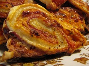 listové těsto (500g), šunkový salám (200g), vysočina nebo slanina (100g), tvrdý sýr (200g), kečup (asi 8 lžic), provensálské koření (3 lžíce), grilovací nebo podobné koření (3 lžíce), cibule (1 větší nebo 2 menší), hladká mouka pro rozválení těsta, vejce (2), pepř